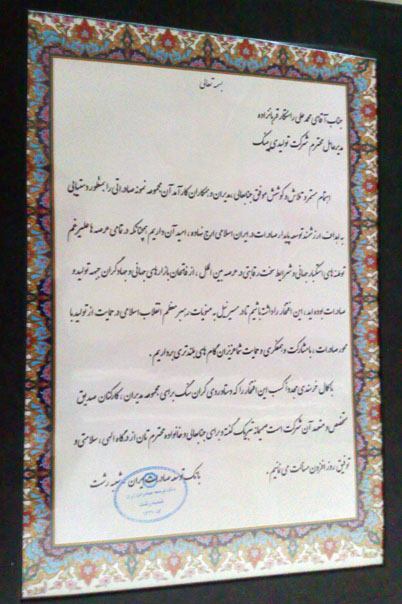 لوح تقدير از طرف استاندار كل استان گيلان |
